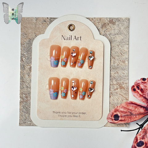 Luxe Exclusief Ontwerp 10 Stuks Korte Vierkante Acryl Pers Nagels Lijm Handgemaakte Duurzame Kunstmatige Vingernagels Stiletto Vlinder